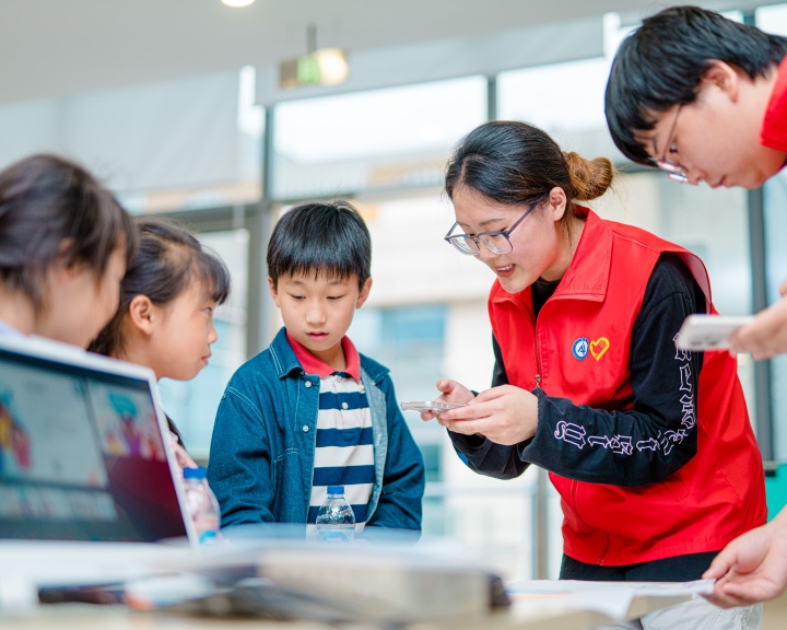 活动伊始,通过“动物园里有什么”趣味游戏调动起孩子们的热情。随后,小朋友们用画笔描绘出自己最喜爱的小动物,志愿者们使用AI技术将这些二维画作转化为生动的3D电子图像,在作品分享环节,孩子们踊跃分享了画作背后的创意故事。