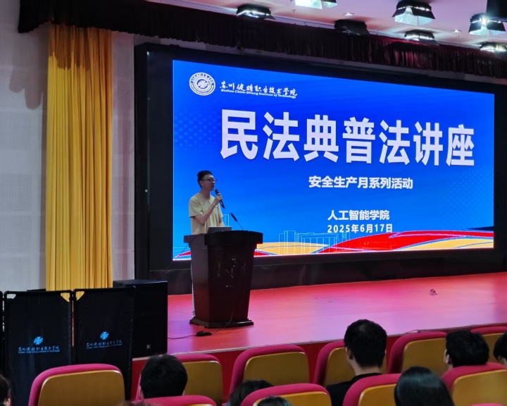 为进一步加强学院法治教育,提升学生法律素养和安全意识,6月17日,人工智能学院邀请太仓市法院吴守花法官进校开展民法典普法讲座。