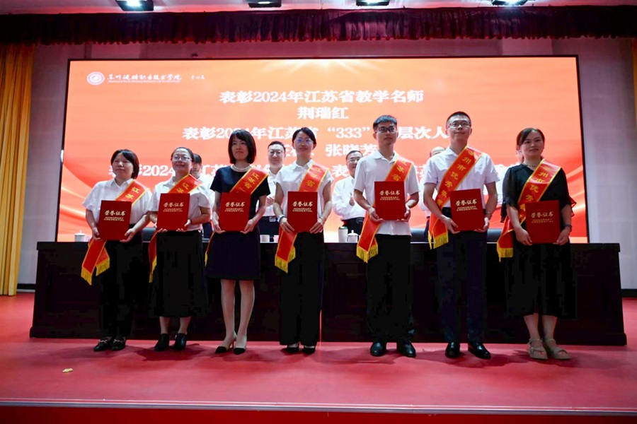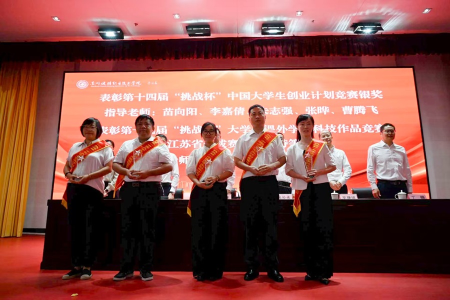 一年来,学院在教师教学能力比赛、师生技能竞赛再创佳绩。在世界职业院校技能大赛中荣获金奖1项、银奖1项;在江苏省职业院校技能大赛中获一等奖2项、二等奖12项、三等奖12项;在江苏省职业院校教学能力大赛中获一等奖3项、三等奖2项;在第九届“启航杯”江苏省高职院校新教师教学竞赛中获一等奖1项。现场,学院领导为获奖老师颁奖。