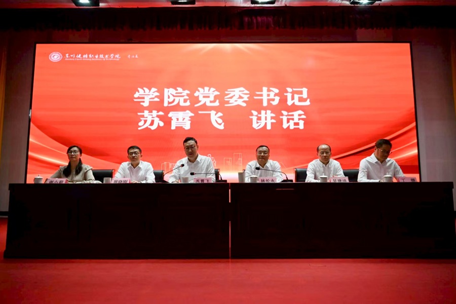 苏霄飞代表学院党委向全体教职工致以节日问候,向受表彰教师与团队表示祝贺,向新入职教职工表示欢迎,向为学院发展作出贡献的退休教师致以崇高敬意。他指出,一年来教师们在各领域成绩优异、风采卓然,并提出三点期望:一是坚定“心有大我”信念,把个人“小目标”融入国家“大蓝图”社会“大格局”,做民族复兴筑梦人;二是坚持“启智润心”的育人智慧,点燃学生梦想,做大国工匠的塑造者;三是坚韧“勤学笃行”态度,主动学习跟上时代,做终生学习的示范者。他要求全体教师弘扬教育家精神,将个人梦想融入教育强国、职教先行时代洪流,把价值追求镌刻在中国式现代化大道上,躬耕教坛、强国有我,共筑健雄多彩篇章。