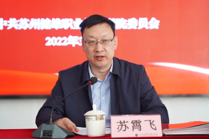 苏霄飞还分析了学院全面从严治党的形势,指出了存在的问题,要求强化责任意识、突出问题导向,在工作中认真研究,制定整改措施,切实解决存在的问题。他强调,全面从严治党永远在路上!深入贯彻新时代全面从严治党重要方略,巩固发展反腐败斗争压倒性胜利,持续营造风清气正的校园政治生态,是全院各级党组织、党员干部和全体师生的共同责任,要以自我革命的勇气和担当,奋力书写建设全国一流特色高职院校新篇章,以优异成绩迎接党的二十大胜利召开!