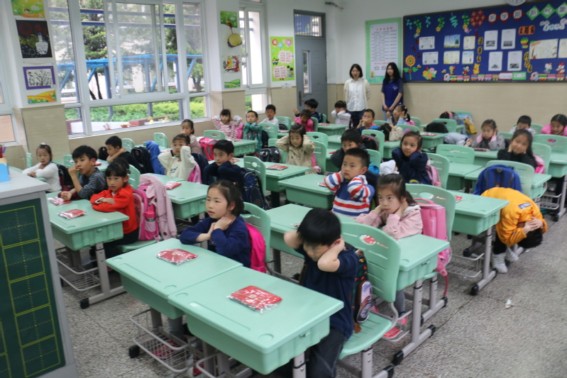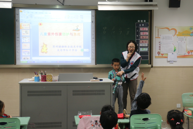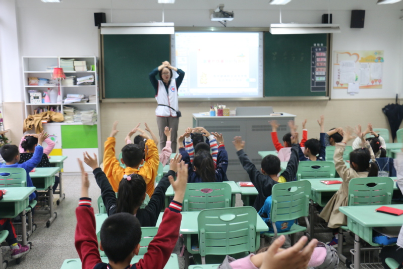 4月9日下午,朱棣文小学一年级四班的教室里掌声阵阵,商学院王玉老师带领商学院的志愿者同学们给该班50名孩子带来一堂别开生面的急救知识课。
