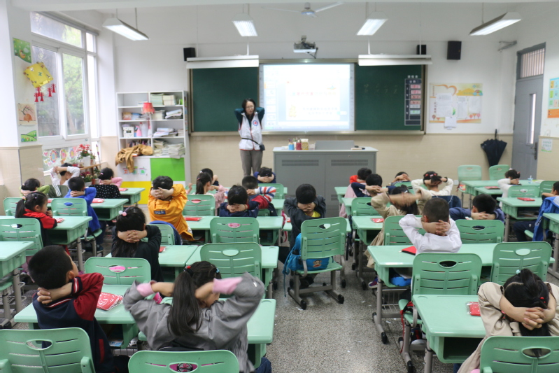 讲座现场,王玉老师结合PPT,用简练易懂的语言为学生们讲解了面对溺水、骨折、烫伤、拥挤践踏等突发事情时的处理和逃生方法,互动环节更是让孩子们积极参与其中。45分钟时间里,四方面的急救知识,老师和孩子们听得特别认真,还纷纷举手抢答老师的提问。