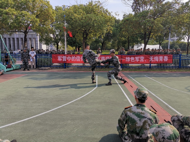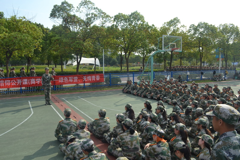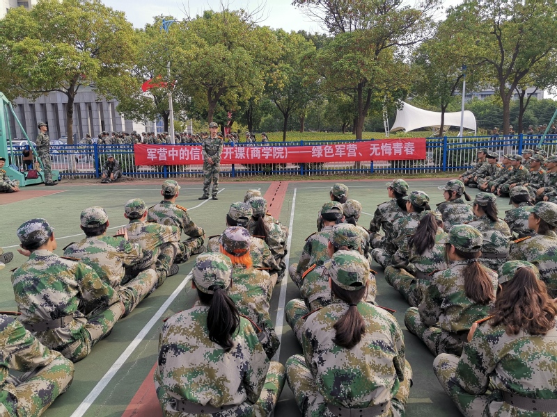 为了进一步增强同学们吃苦耐劳、团结自律的精神,树立正确的人生观、价值观,9月24日下午,商学院在军训场上开展了“绿色军营、无悔青春”为主题的信仰公开课,2019级军训新生参加了本次公开课。