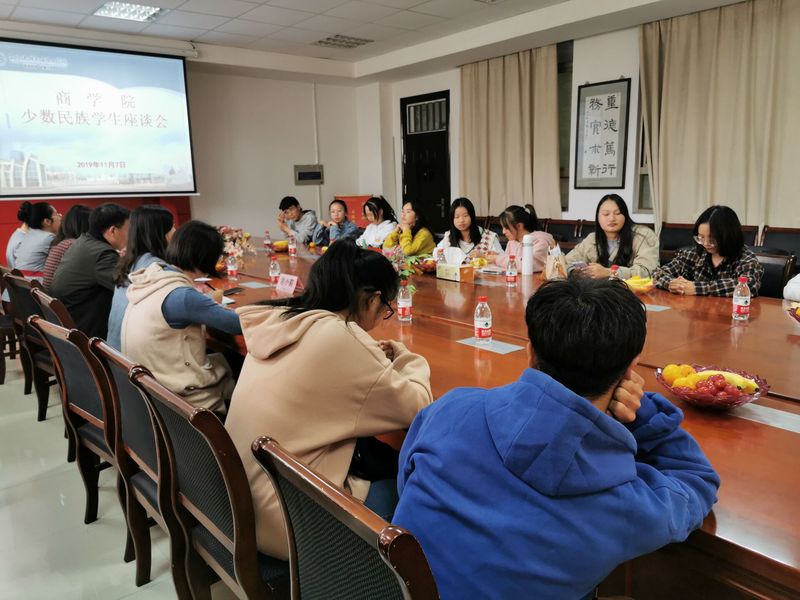 11月7日中午,商学院举行2019级少数民族学生座谈会。来自侗族、苗族、回族、壮族、蒙古族、土家族6个少数民族的17名同学(其中9名来自贵州玉屏)参加座谈,商学院党总支书记谢小莉和相关辅导员老师出席会议。