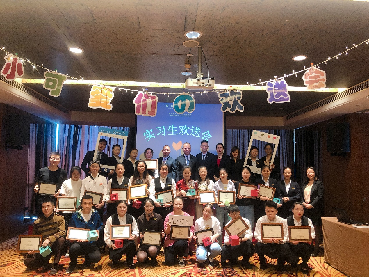 近日,法国雅高集团管理的奢华五星级酒店——南京索菲特银河大酒店举办了一场别开生面的实习生欢送会,而欢送的主角是我校商学院2016级酒店管理专业的9名同学。