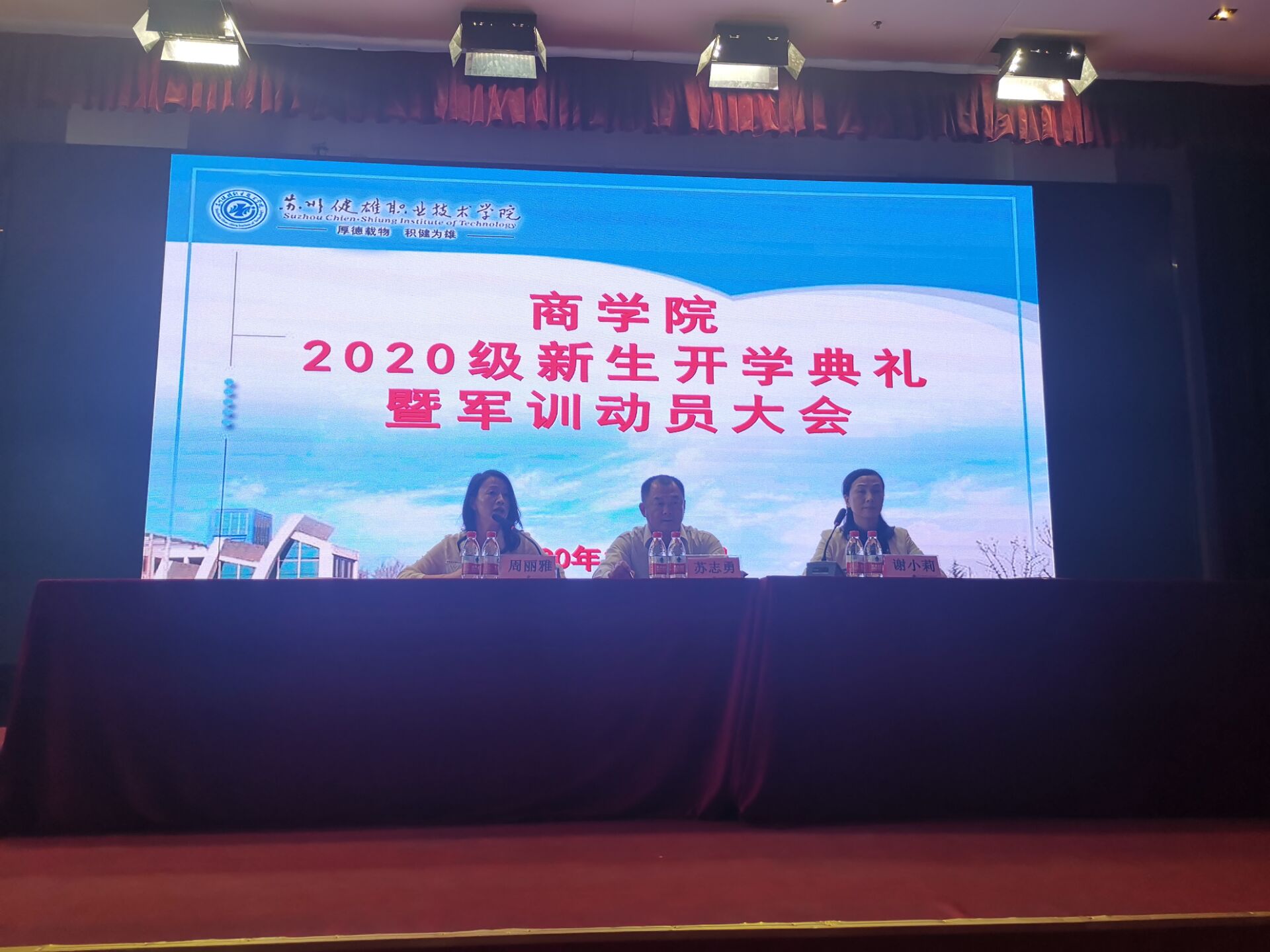 10月12日下午,商学院举行2020级全体新生开学典礼暨军训动员大会,商学院领导班子、全体辅导员与部分班主任参加活动。