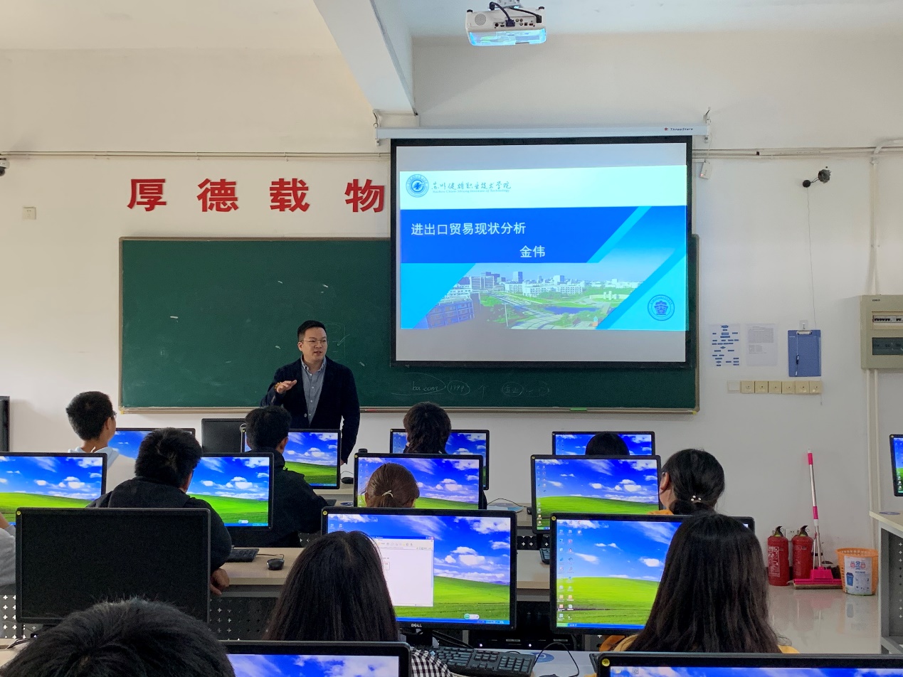 苏州五洋集团陈瑜总裁和金伟经理分别做了“国际金融与职业生涯规划”和“进出口贸易现状分析”的讲座;来自国信集团的跨境电商资深专家周经理做“跨境电商实操案例”的讲座。