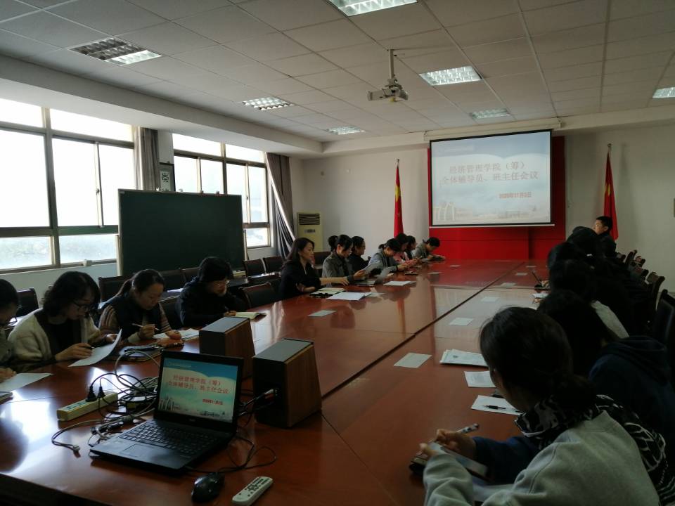 11月3日下午,商学院在C3-202会议室召开全体辅导员班主任会议,传达学校有关精神,安排布置近期学生工作。学院党总支书记谢小莉、副书记周丽雅出席会议,全体辅导员和班主任参加了会议。
