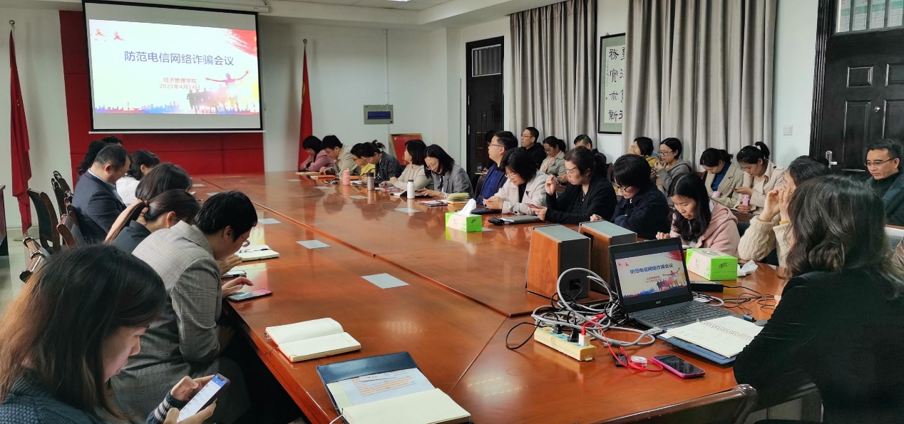 为严密防范电信网络诈骗,切实保障师生财产安全,4月14日下午,经济管理学院(筹)召开防范电信网络诈骗工作会议,学院领导班子以及全体教师参加了此次会议。