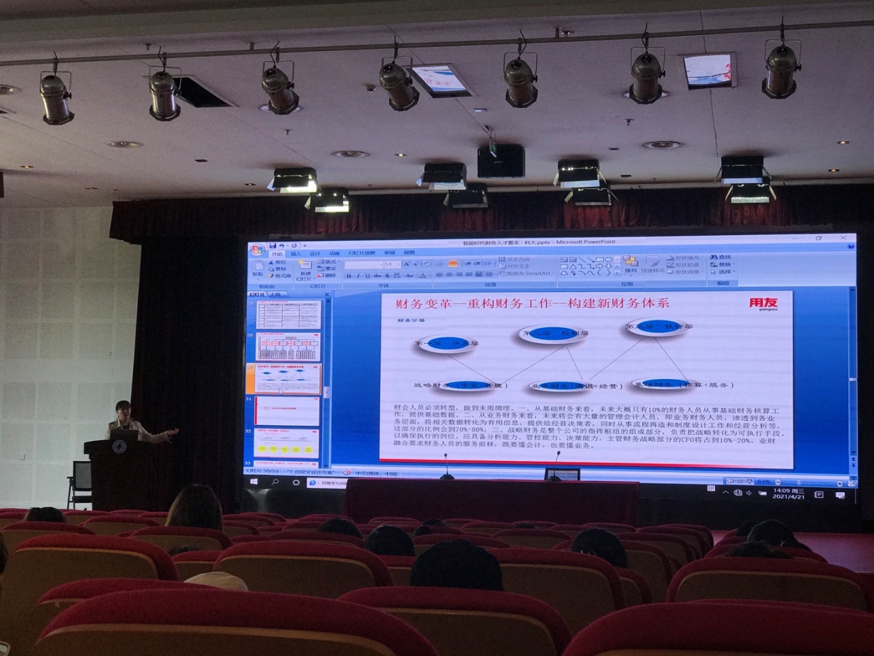 讲座围绕“智能时代财务人才需求”主题展开,专家从自身的财务实践工作经验出发,阐述自己带领的团队如何设计财务流程模型来解决智能时代大环境下公司的财务困境;在智能时代财务环境下,财务人员应具备的能力等。