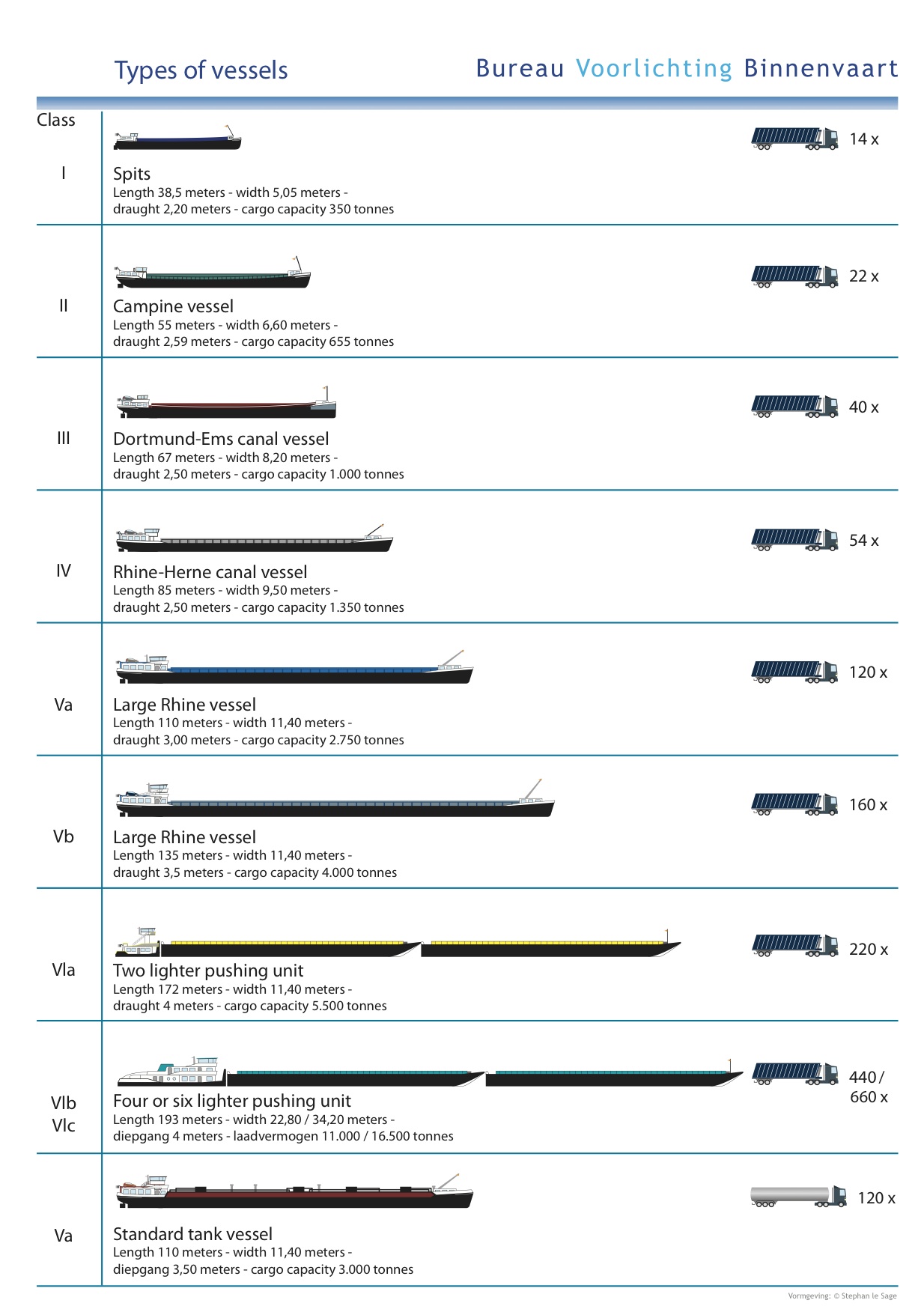 Va | Large Rhine vessel 大莱茵河驳船 长110米,宽11.4米 吃水3.00米,载货量2750吨 |