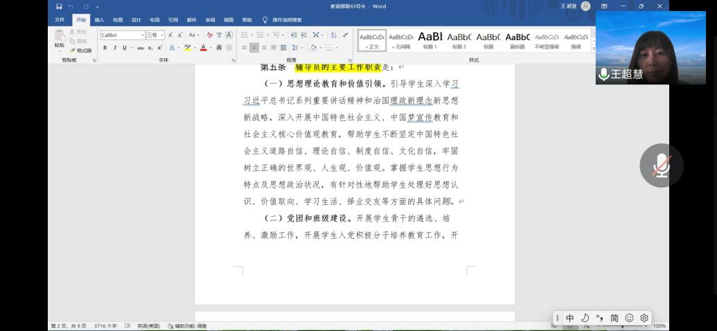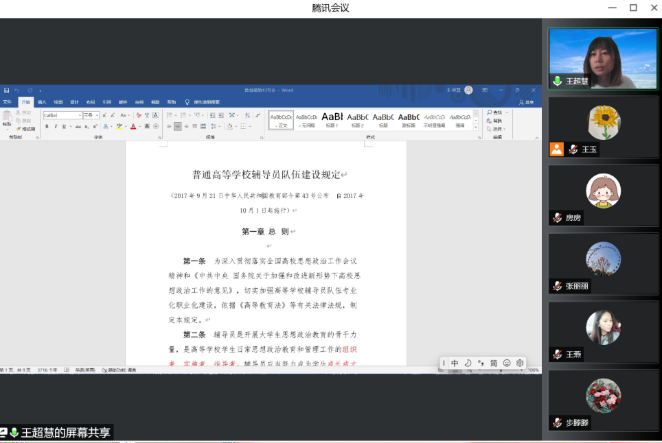 本期领学内容是《普通高等学校辅导员队伍建设规定》,即教育部第43号令。这是2017年9月教育部为切实加强高等学校辅导员队伍专业化职业化建设,依据《高等教育法》等有关法律法规,专门制定的与辅导员队伍建设息息相关的规定。