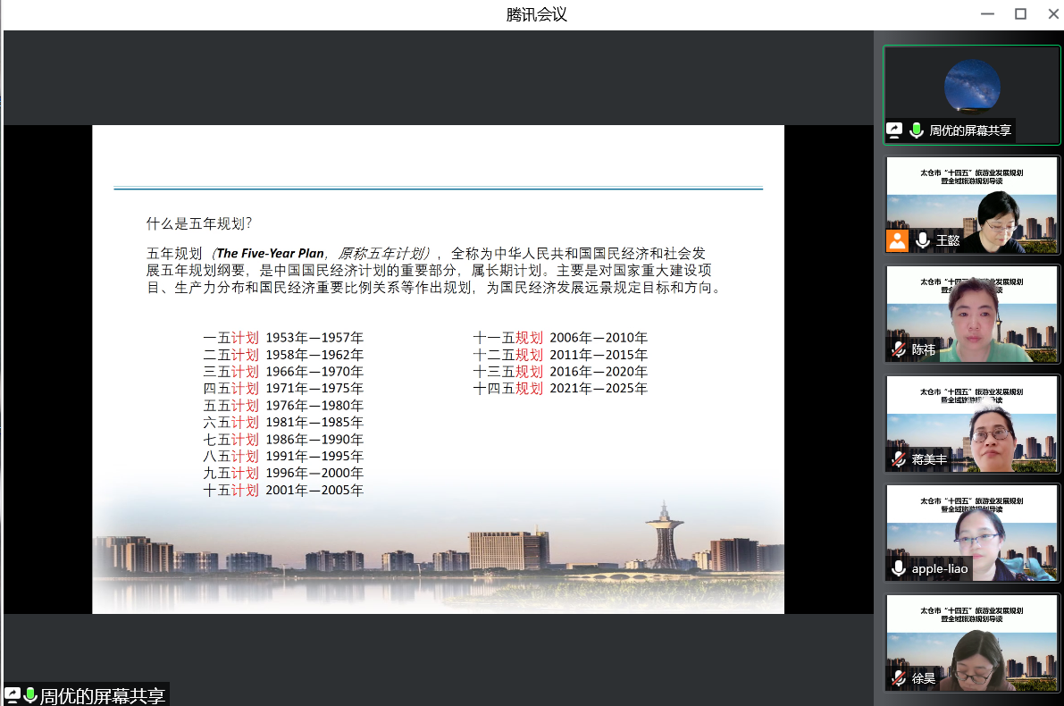 6月16日下午,经济管理学院邀请太仓市润鑫旅游发展有限公司运营部的周优经理为旅游管理专业师生带来一场精彩的《太仓市“十四五”旅游业发展规划暨全域旅游规划解读》的专题讲座。讲座以腾讯视频会议的形式展开,旅游管理、酒店管理100多名师生聆听了讲座。