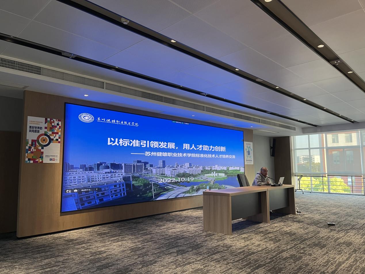 活动主旨为贯彻实施《国家标准化发展纲要》,推广标准化创新理念、加强标准化人才建设,推动产业集群、人才建设与标准创新的深度链接。会上,苗老师做了《以标准引领发展,用人才助力创新》的报告,报告主要从我校标准化技术专业的目标定位、人才培养模式、校企双元育人模式及助力企业发展等几个方面展开。