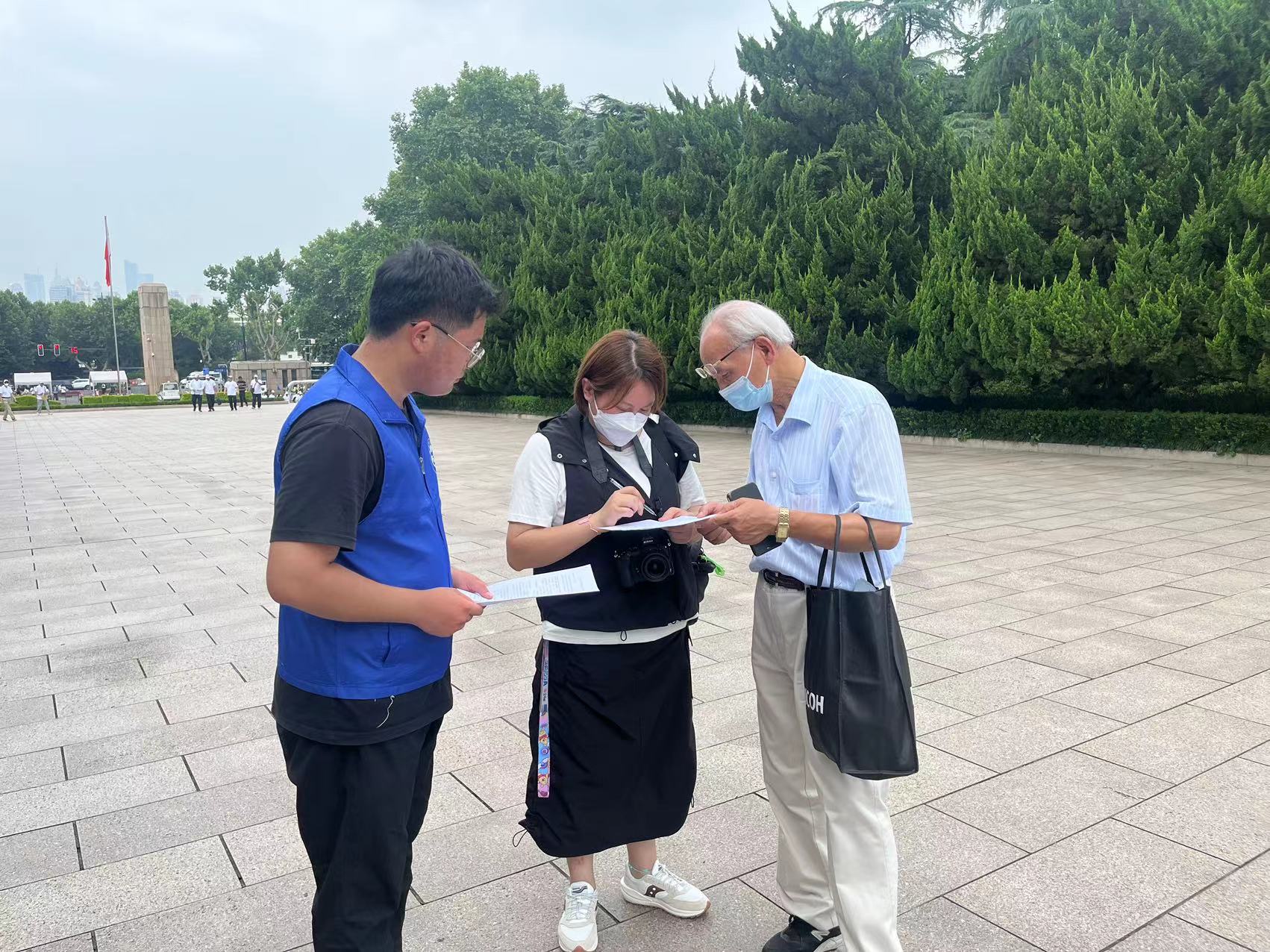 南京实践分队在实地走访过程中,向游客调研进一步了解“雨花台精神”的传承与发扬情况,以不同视角了解历史,感悟历史,向先烈致敬。通过调研结合所学自我内化为所得,学习党史,不断前行。