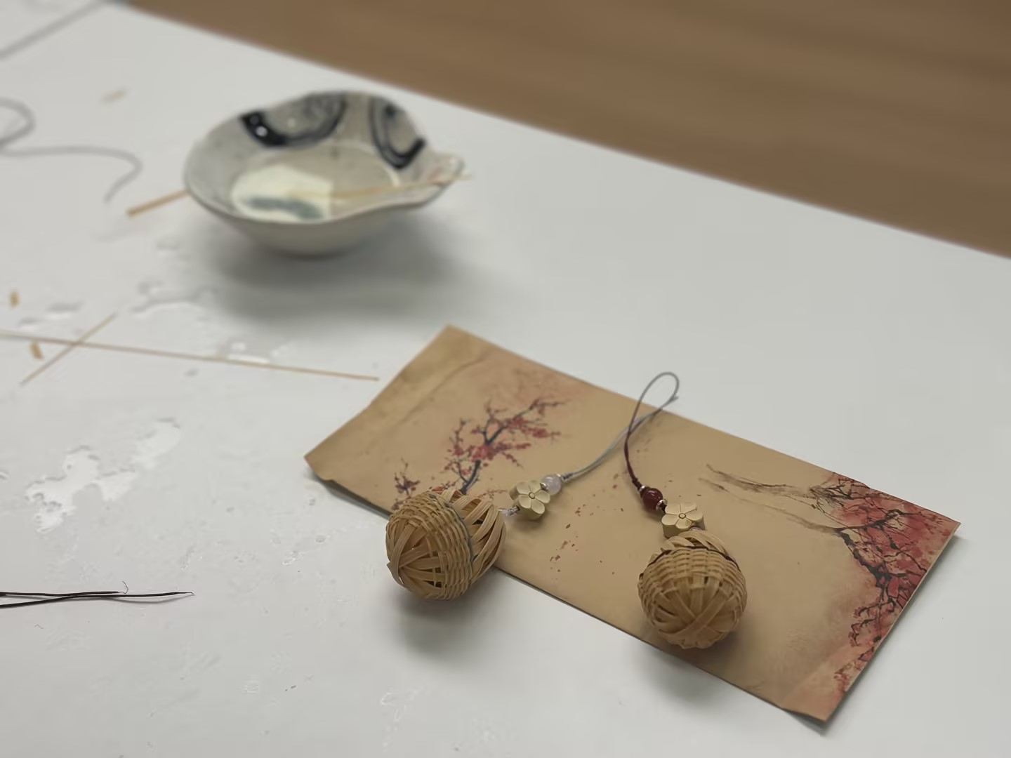 竹编工艺有着悠久的历史,非遗手工艺体验,是一项充满趣味的活动,为传承传统技艺,弘扬国风文化。活动现场,参加体验的同学们在工作人员的引导下领取活动所需材料,随后社区工作人员为大家播放了竹编视频,接着,讲解了竹编工艺的历史、制作流程以及主要特点。在对竹编工艺有了一定了解后,同学们也迫不及待地动手去做属于自己的竹编作品。竹编工艺看似简单,却是极其的繁琐,几根纤细的竹条在穿、挑、压间,宛如一根根飘逸的丝带,匠心的态度、耐心的编织,最终,参与的同学都出色地完成了属于自己的竹编作品。