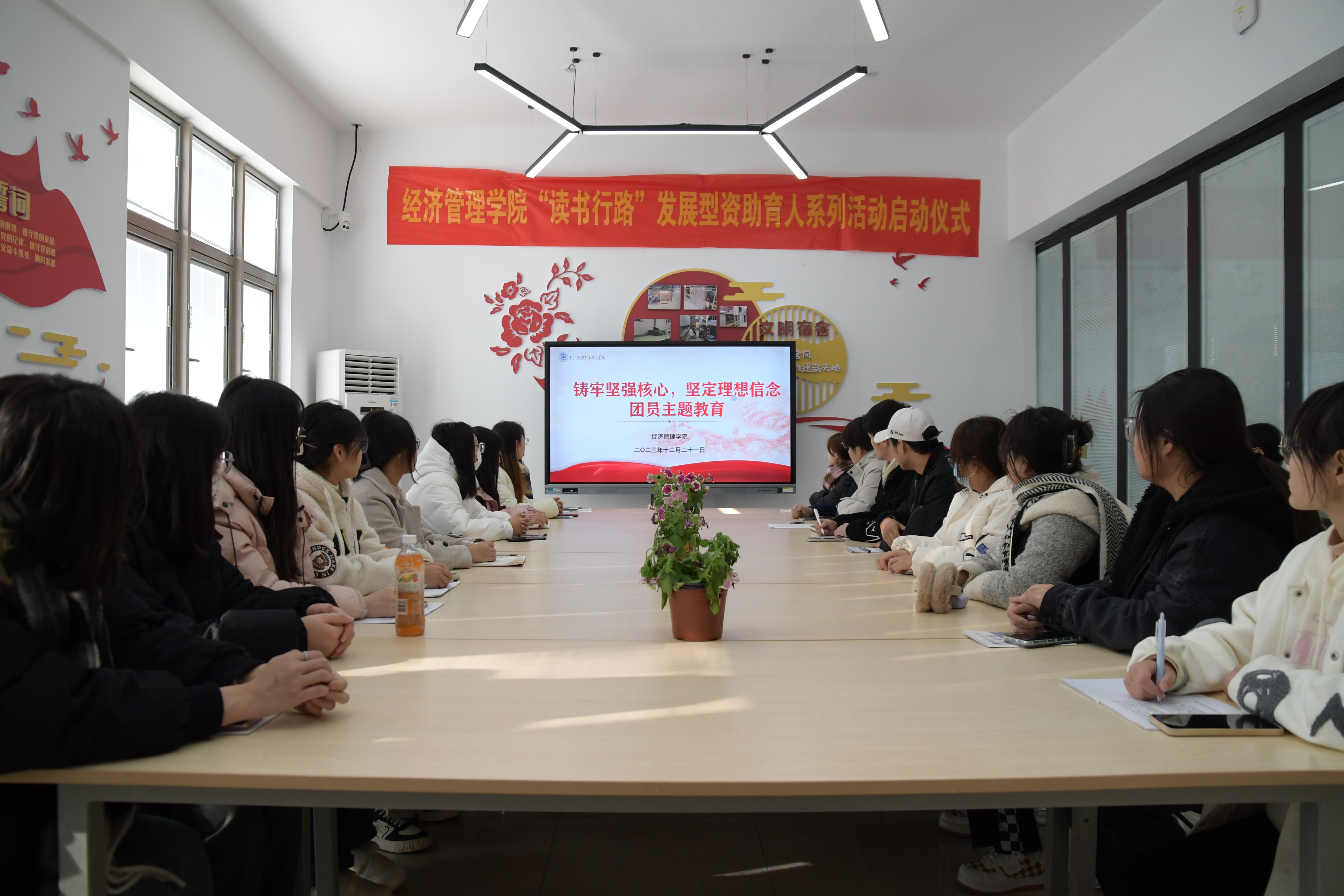 为深入学习贯彻习近平新时代中国特色社会主义思想,推动团员和青年主题教育走深走实。12月21日下午,经济管理学院在紫薇社区开展“铸牢坚强核心,坚定理想信念”团员主题教育活动,辅导员顾宇婷老师和部分团员代表出席并参与活动。