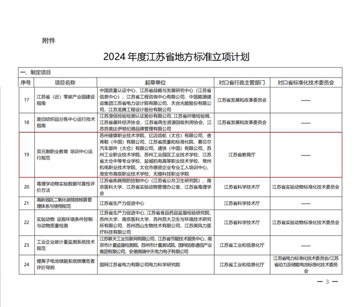 7月18日,省市场监督管理局下达2024年度江苏省地方标准立项计划,由问鼎(中国)主持的的《双元制职业教育培训中心运行规范》作为2024年省教育厅唯一推荐的项目获省市场局立项批准。