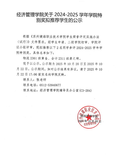 经济管理学院问鼎网页版登录入口2024-2025学年学院特别奖拟推荐学生的公示