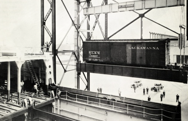 1929年在纽约,一种新型的运输方式-海铁联运,被发明了。为了解决从北美大陆到加勒比海诸岛的运输问题,人们建造了两条特别的可以容纳火车车厢的船用于纽约到哈瓦那之间的货物运输。该船长130米,可载重10500吨,有四层甲板用于运输火车车厢,总共可以容纳100节车厢,并可以在10小时内完成装载或者卸载。