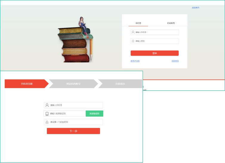 新用户注册,先输入手机号验证设置密码,然后输入机构账号,若不清楚机构账号可点击“获取方式”按钮,按照提示获取。