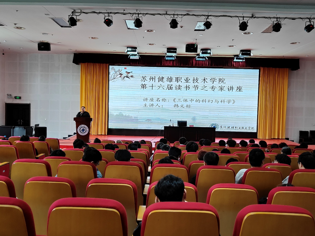 4月22日下午,作为学院第十六届读书节的首场活动,中国科学院上海天文台韩文标研究员为我们带来了一场《三体中的科幻与科学》讲座,讲座由图书馆办公室刘毅老师主持。