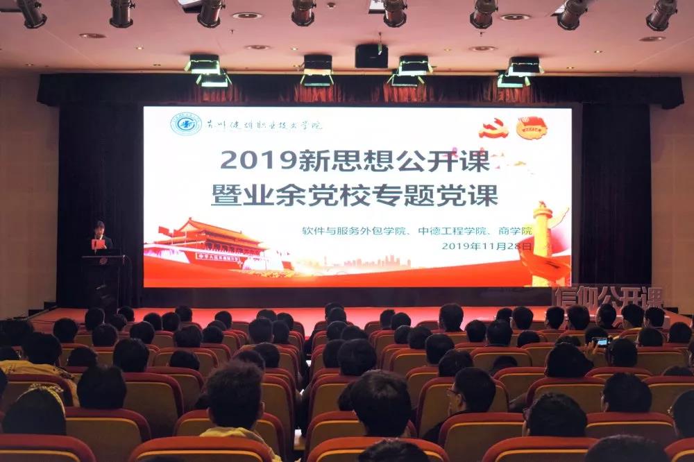 11月28日晚,软件与服务外包学院、中德工程学院以及商学院携手举办新思想公开课暨业余党校专题党课。本次活动特邀中共太仓市委党校副校长印春平老师为同学们做《继承革命传统坚定理想信念》的专题讲座,三个学院的学生干部和业余党校学员共同参加了本次活动。