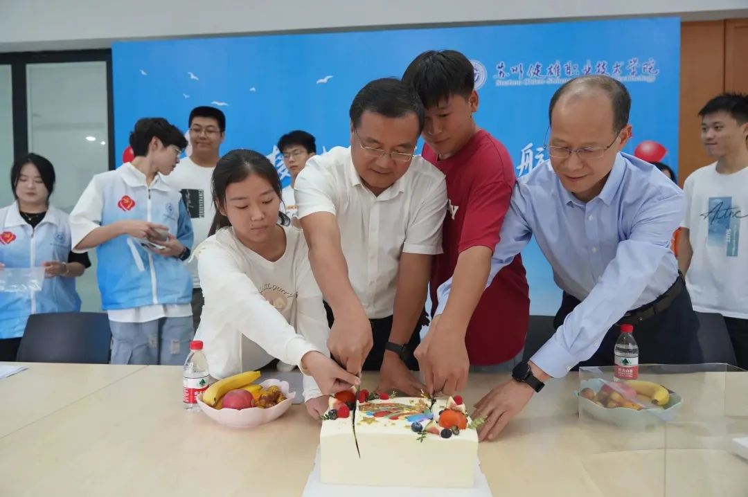 “祝你生日快乐.....”,生日会现场一片欢声笑语,十分温馨。院领导、老师们还和学生一起切蛋糕,并现场赠予学生成长知识礼包——《做担当民族复兴大任的时代新人》。小寿星们也满怀激动地说到:“很幸运自己的生日能和开学报到同启,并感受到了学校迎新的温度”。