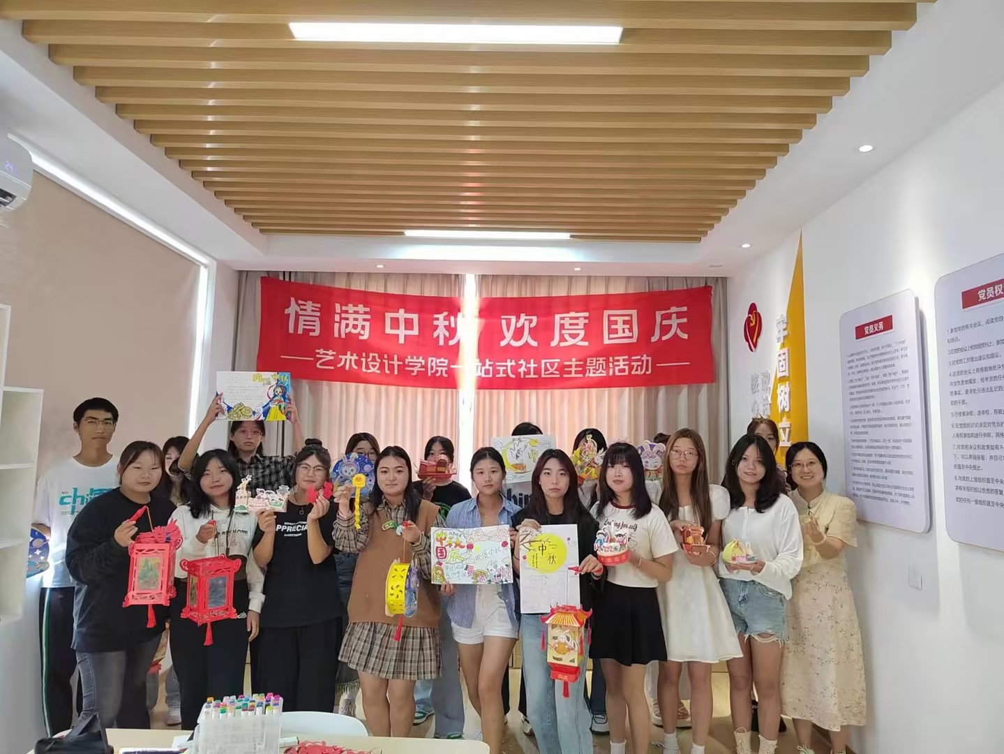 9月29日上午,为了让留校的学生感受到中秋节的浓情,艺术设计学院在一站式社区举办了情满中秋欢度国庆主题活动。希望留校的同学能感受节日氛围的同时体验中华传统文化的独特魅力。