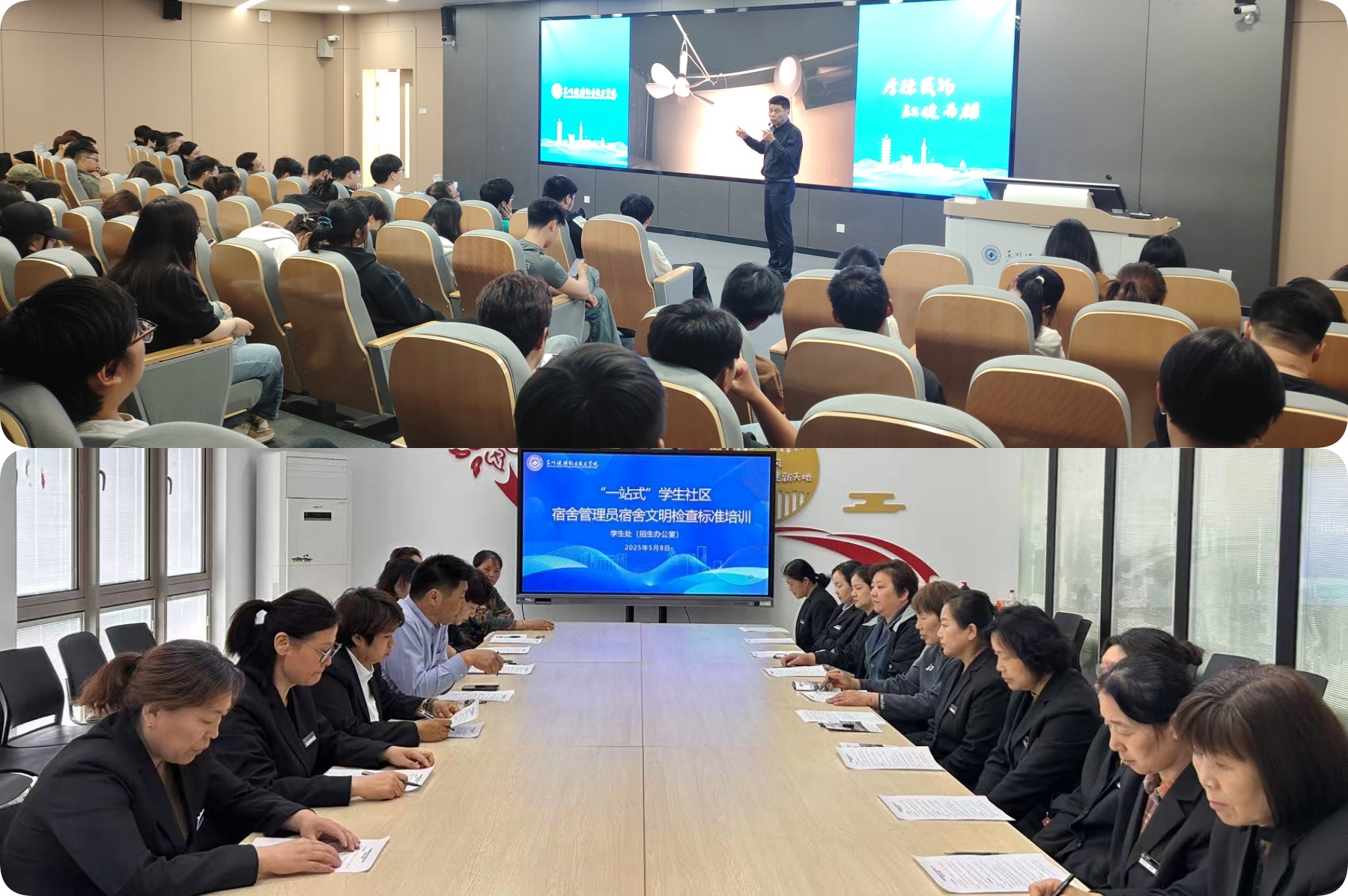 培训围绕近期修订出台的《宿舍文明检查评分标准》,从安全红线、文明素养、内务卫生等三个方面进行了解读与培训。重点剖析违规使用大功率电器、私拉乱接电线等典型问题,强调学生宿舍是学生学习生活的重要场所,是校园安全和文明建设的重要组成部分,期望全体学生牢固树立安全意识,自觉践行宿舍文明公约,共同构筑安全、文明、和谐的学生社区空间。