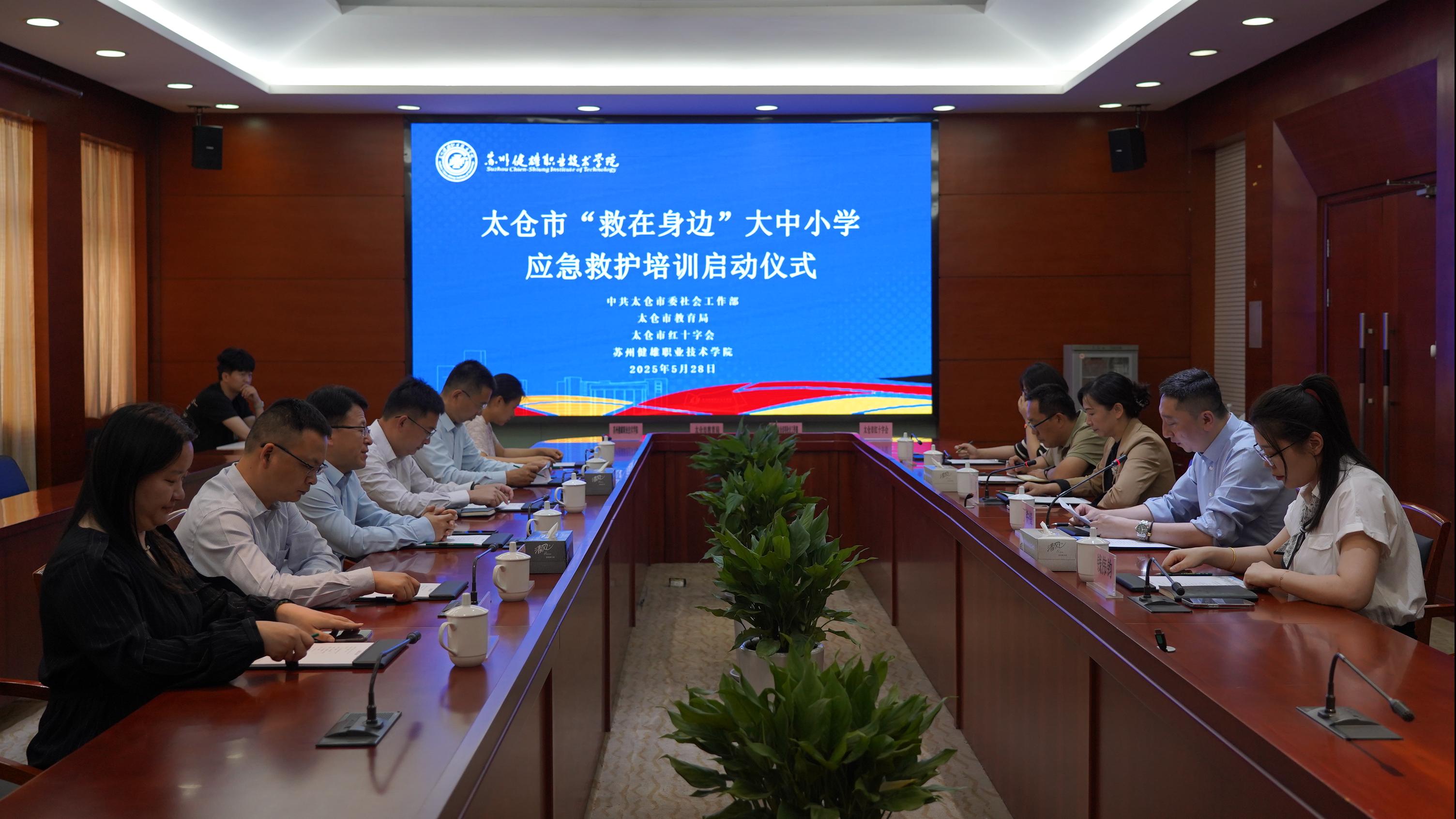 5月28日上午,太仓市“救在身边”大中小学应急救护培训启动仪式在问鼎(中国)举行,太仓市委工作部副部长王曹平、太仓市教育局副局长戴明、太仓市红十字会常务副会长李云汉、学院党委委员、副院长谢小莉参与启动。
