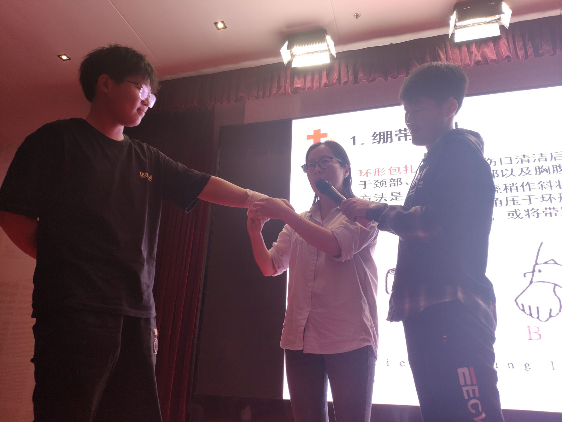 在讲座中,金杰老师和王小伟老师采用ppt课件和仿真人模型演练的方式,深入浅出的讲解如何有序地救助**患者,尤其为师生重点讲解了如何进行心肺复苏和止血包扎技能。 在每一个救护环节,两位老师都做了精准示范,同学们也积极上台争当模特,近距离学习急救技能。老师们生动的解说,赢得了同学们不少掌声。