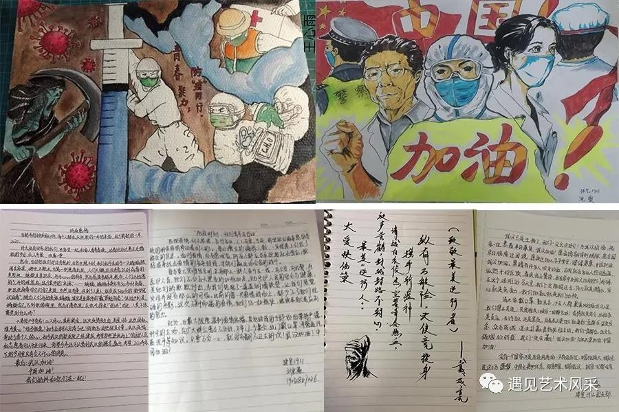 立足于专业特长,艺术学子发挥创造力和专业优势,以文字、绘画、海报等多种形式,宣传防疫知识、记录防疫日志、致敬最美逆行者,为抗疫阻击战贡献青春力量。