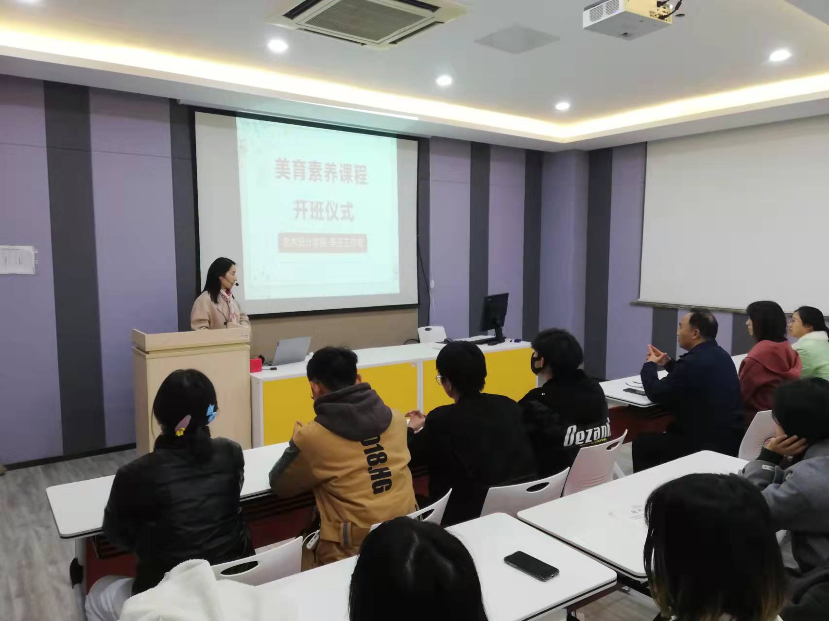 为进一步推进艺术设计学院“美玉”辅导员工作室建设,落实实践美育的课程开发与建设,12月7日晚,《美育素养课程》开班仪式在A210隆重举行。“美玉”工作室全体成员以及99位学员出席了启动仪式。