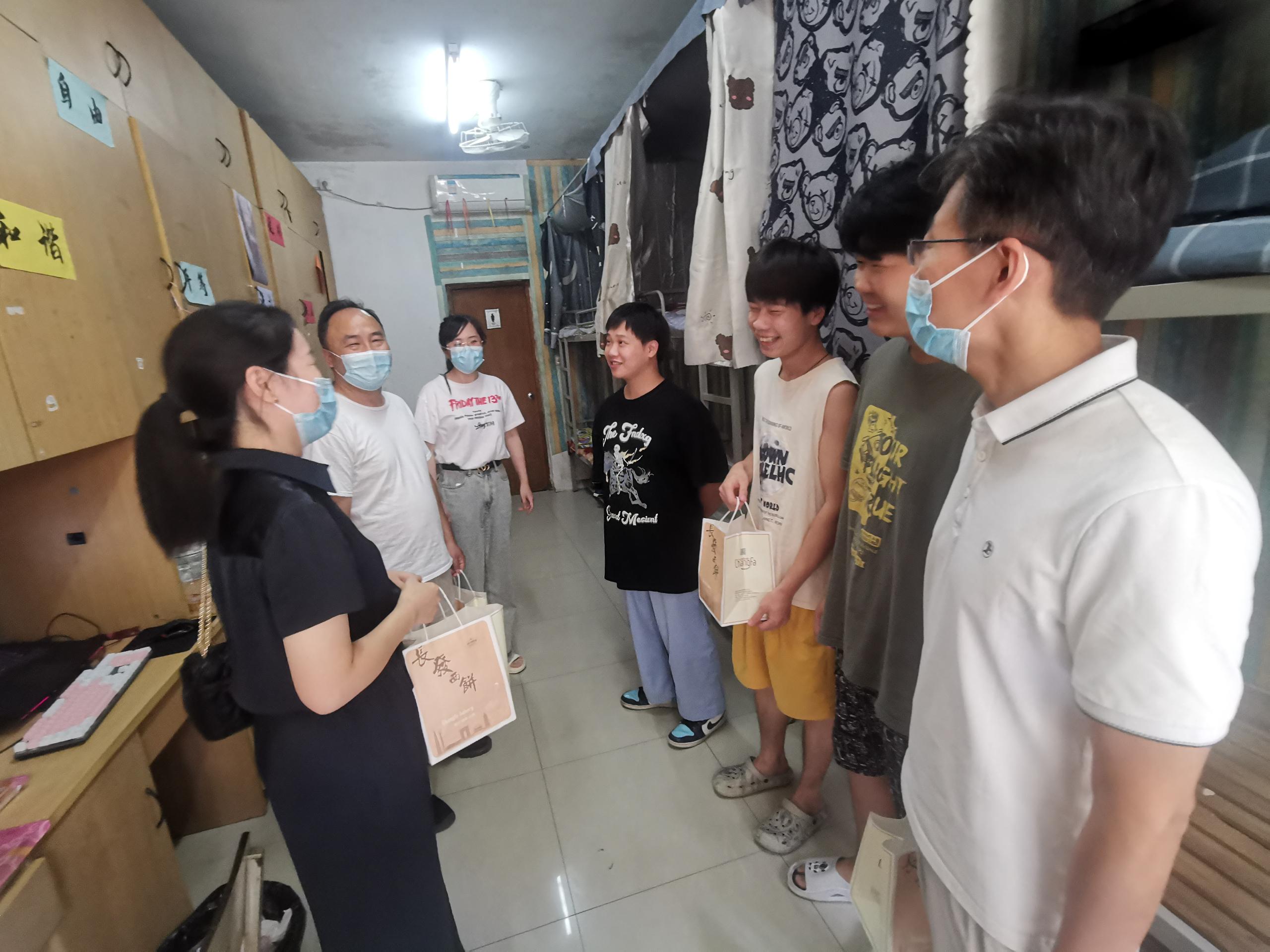 老师们为同学们分发了中秋月饼,并与大家进行了亲切交谈,号召同学们做好防护,认真落实疫情防控要求,勉励同学们珍惜大学时光,刻苦学习、奋发有为。