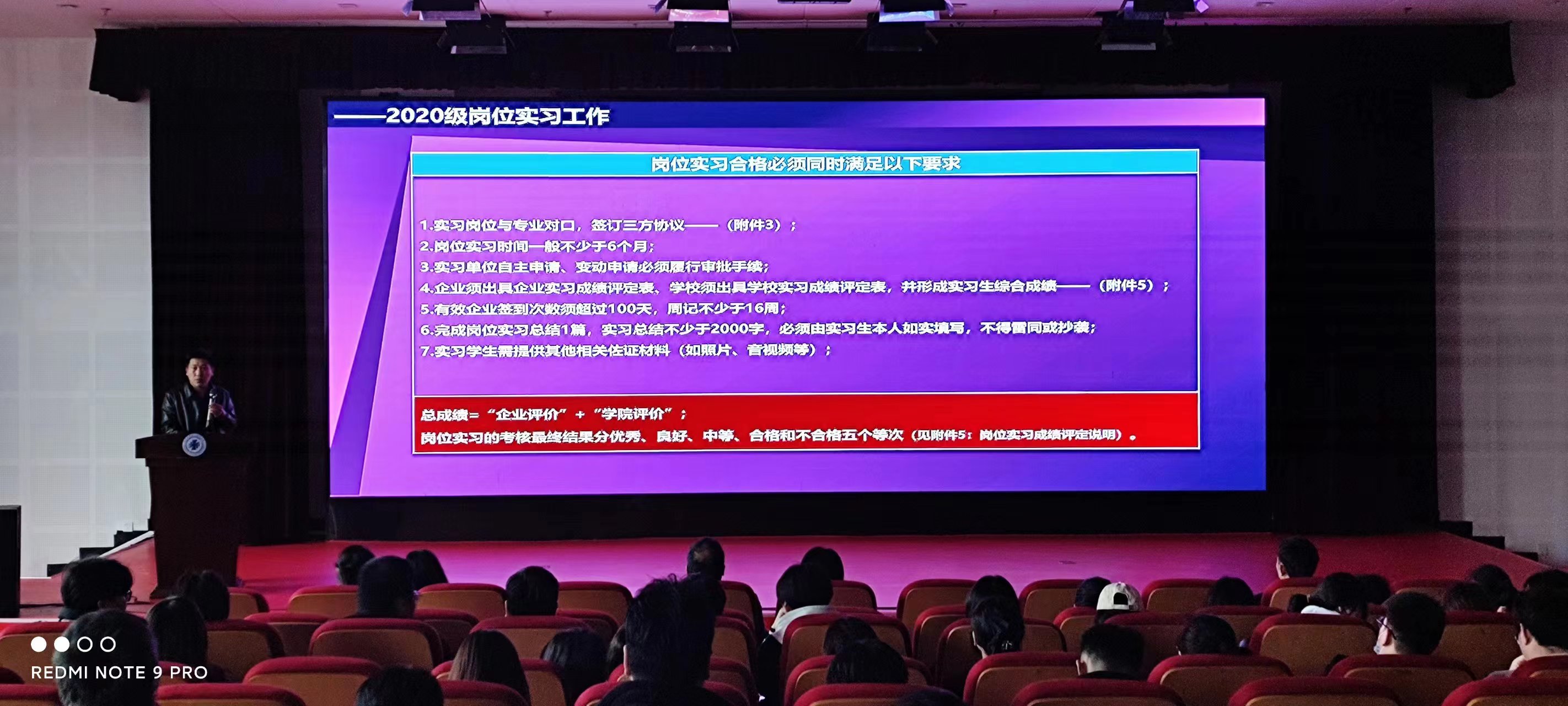 会上,李鹏老师对岗位实习后阶段的具体要求进行说明,要求同学们要保存自己实习过程材料,完善并上交实习过程记录。各专业负责人根据本专业毕业设计课程标准,指出提交材料的具体要求。朱华明老师为学生讲解毕业资格要求,以及毕业前阶段的重点事项。