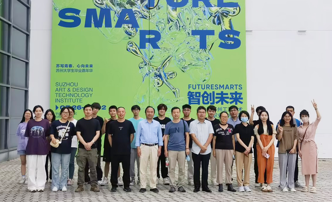为学习同类高水平院校的人才培养成效与教育教学水平,结合专业发展和课程教学需要,2023年5月31日,艺术设计学院专业负责人、骨干教师们与21、22级部分同学在陈邦琼书记的带领下赴苏州工艺美术职业技术学院参观2023届艺术设计毕业展。