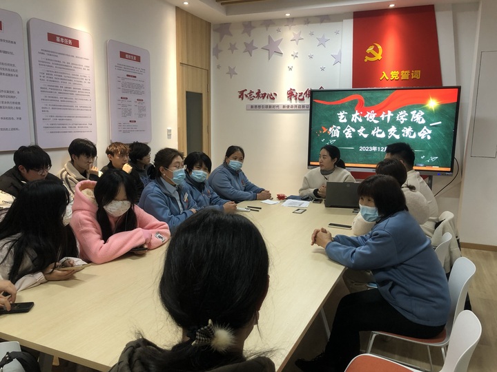 为了打造干净整洁、舒适安全的宿舍环境,促进学生良好生活习惯的养成,2023年12月13日,艺术设计学院在紫薇社区举行“学习交流促进步,宿舍文化添色彩”宿舍文化建设交流会。艺术设计学院党总支副书记王钰岚、四位宿管阿姨以及部分宿舍代表参加了本次会议