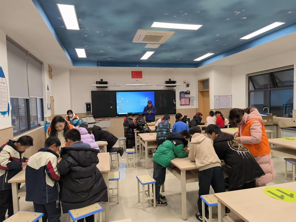 12月20日下午,《苏作木工艺》文创艺术美育课程在太仓市南郊小学的美术教室准时开始,参加本次课程学习的是三(1)班的36位同学,这是左沭涟老师和五位学生志愿者在南郊小学开展的第15次美育培训课程,受到了师生一致好评。