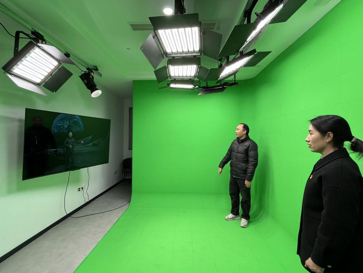 活动伊始,工作人员带领大家了解了“云上太仓”中各个实训场地的功能,并重点介绍了虚拟录播间。党总支书记陈邦琼等几位党员同志进行了体验,通过切换不同的虚拟背景体感受不一样的录播效果,党员同志有感而发,纷纷感叹数字技术的强大。