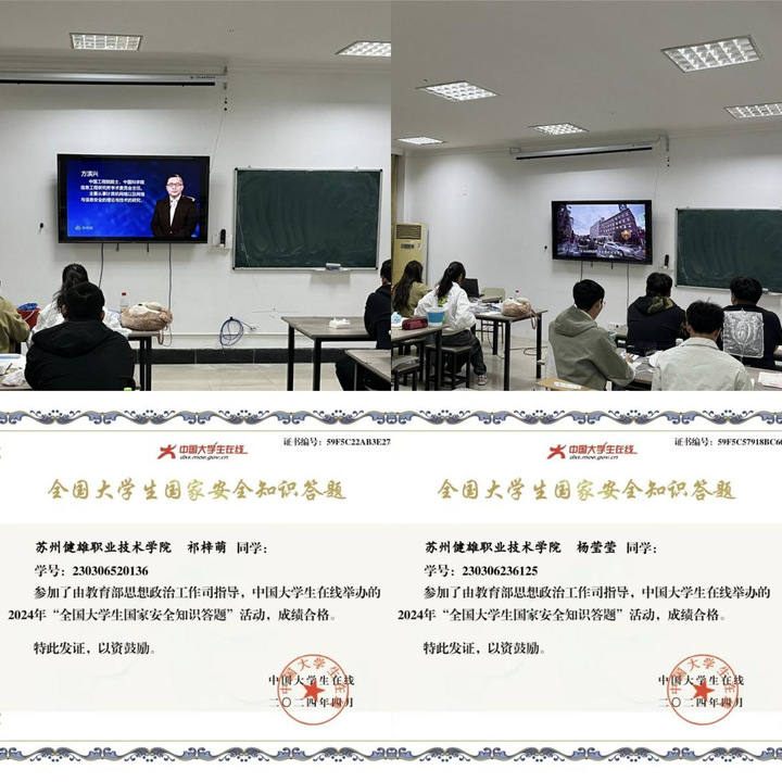 艺术设计学院组织在校生通过中国大学生在线官网及中国大学生在线视频号等直播平台,观看学习“千万师生同上一堂国家安全教育课”和“国开大讲堂·国家安全教育公开课”,学生积极参与“全国大学生国家安全知识答题活动,通过学习和答题,学习国家安全知识,提升国家安全意识。