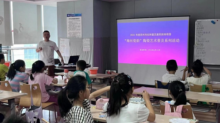 为传播陶瓷文化艺术,提升大众对中华传统文明及江南地域文化的认知,艺术设计学院党员教师刘磊牵头,依托爱国主义教育(社科普及)基地,开展了一系列陶瓷艺术科普志愿服务活动。暑期,科普活动走进娄东街道景瑞社区、娄东街道华盛园社区等九个社区暑托班,为社区暑托班的小朋友带来了一场别开生面的科普课。