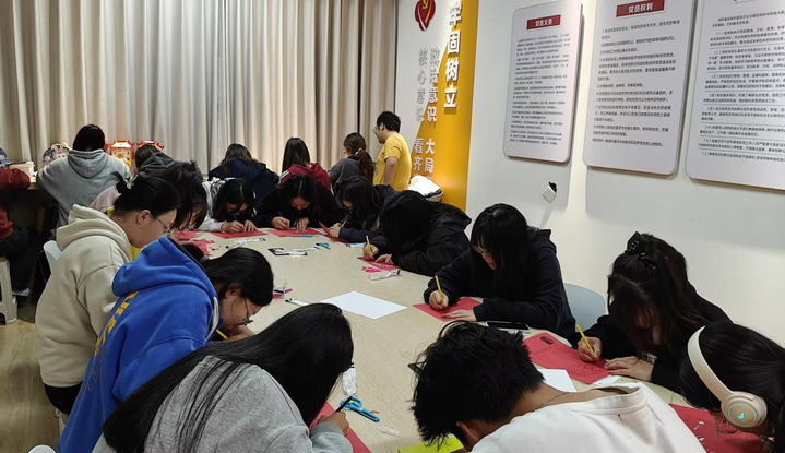 在活动现场,艺术设计学院学生党支部书记周琳带领2023级、2024级学生代表,一起诵读了《我的祖国》,学生代表曹国盛同学分享了《长征》中经典的四渡赤水,飞夺泸定桥等故事,让现场的同学仿佛置身于红军长征艰苦的战斗岁月中,也深切体会到革命先烈们坚定信仰,忠于党的无私奉献精神和誓夺胜利大无畏的革命精神。在座的同学们表示要更加珍惜今天来之不易的美好幸福生活,努力学习技能,争做社会主义事业的建设者和接班人。随后,在爱国主题的剪纸环节中,同学们发挥动手能力,剪出了“红心永向党”“共筑中国梦”“祝福祖国”等爱国主义剪纸作品。