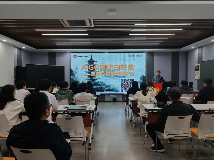 11月9日下午,来自上海GMAKE视觉研究所卢文军为艺术设计学院师生开启了一段题为AIGC重述白蛇传——跨媒介叙事实践研究的探索历程之旅。讲座从艺术表达方式的历史演变入手,以生动的案例阐释了不同时代对传统文化的诠释方式。从北宋王希孟18岁创作的《千里江山图》,到当代青年热衷的《原神》《黑神话:悟空》等数字创作,展现了技术与艺术融合的多种可能。每个时代都有其独特的艺术表达方式,而AIGC技术的出现,为传统文化的传承与创新提供了新的方式。