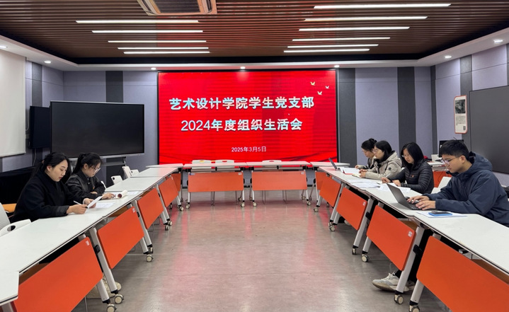 2025年3月5日下午,艺术设计学院学生党支部在A楼一楼展厅召开2024年度组织生活会,会议由支部书记周琳主持,支部全体党员教师和学生预备党员参加。