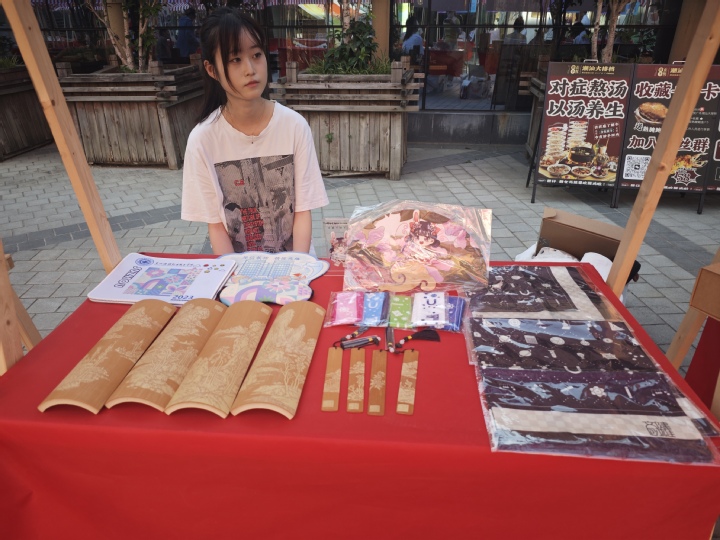 活动现场,健雄文创产品种类丰富多样,涵盖了以校园标志性建筑为灵感设计的钥匙扣、书签,融入太仓历史文化元素的手绘帆布袋、文创笔记本,以及结合非遗工艺制作的竹刻书签等。这些文创产品以独特的设计理念、精湛的制作工艺,将校园文化与太仓地方特色巧妙融合,既展现了校园的青春活力,又彰显了太仓深厚的文化底蕴,兼具实用性与观赏性。