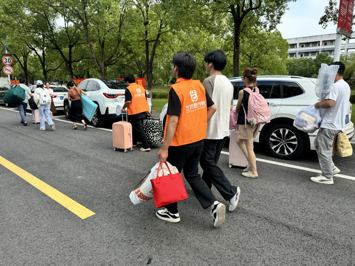 报到结束后,志愿者们主动接过同学们手中的行李,化身“校园导游”带领他们前往宿舍。志愿者将沿途的教学楼、操场、食堂等场所一一介绍给新同学,让他们在熟悉校园的过程中,切身感受属于健雄学院的独特氛围。