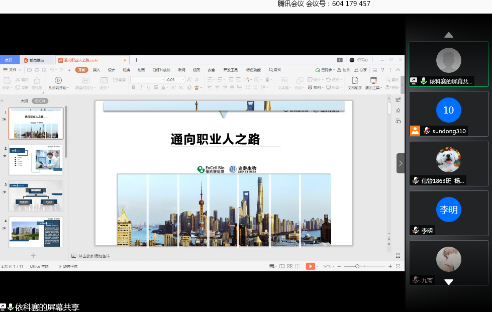 5月23日,由学生处主办,医药科技学院承办的“通向职业人之路”魅力HRM(人力资源部经理)健雄行线上访谈交流会活动成功举办。本次交流会邀请了苏州华测生物技术有限公司、昭衍(苏州)新药研究中心有限公司、苏州智享众创管理有限公司、上海楚豫生物科技有限公司、依科赛生物科技(太仓)有限公司、信立泰(苏州)药业有限公司等多家世界500强企业人力资源部经理作为访谈嘉宾,校2018级部分学生参加了本次访谈交流活动。