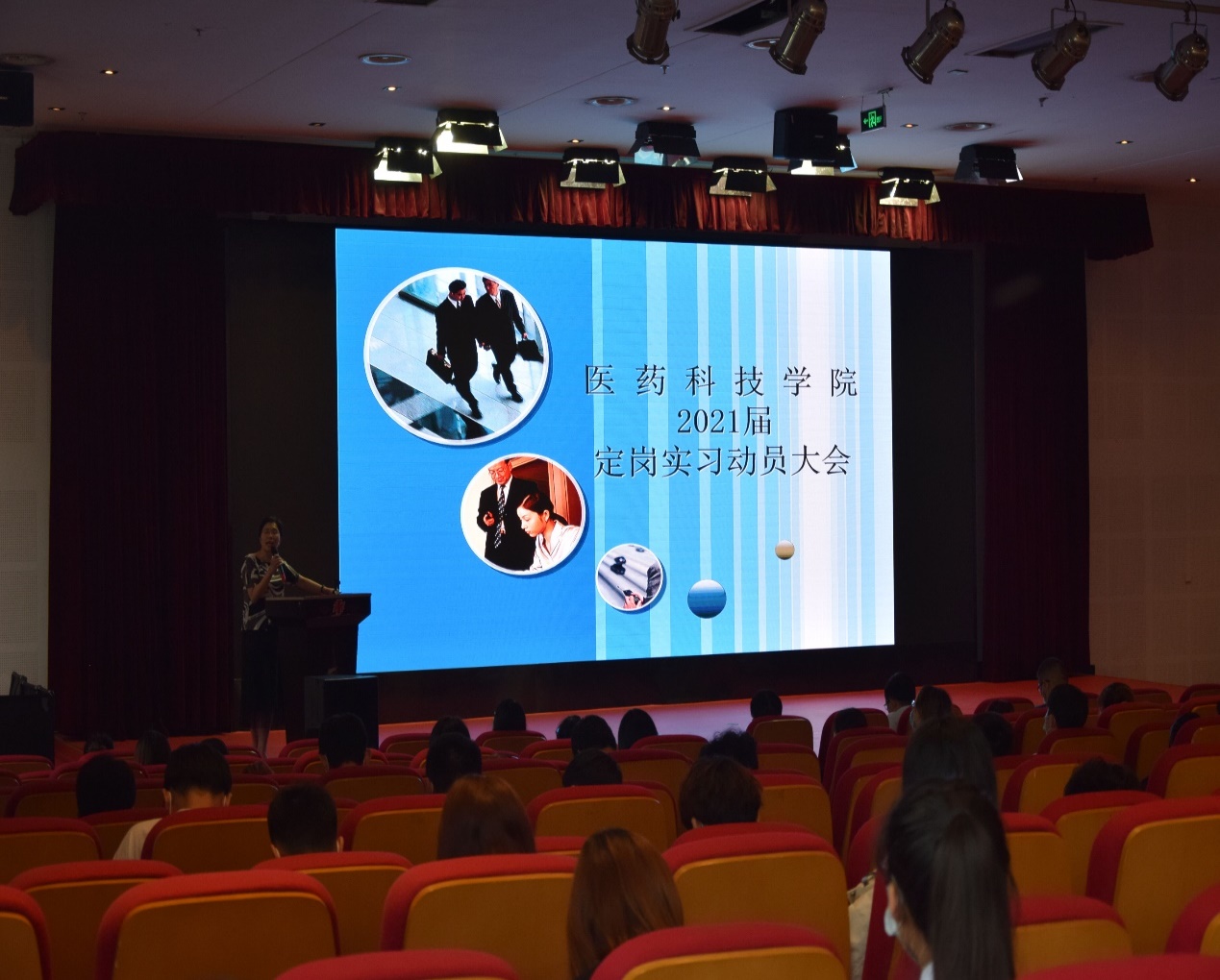 6月16日,医药科技学院在图书馆报告厅举行2021届定岗实习动员大会,医药科技学院院长顾准、党总支副书记贾红圣、办公室主任程炜、学院全体实习指导老师、辅导员以及2021届毕业生参加了本次会议。